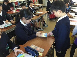 それぞれが6年生のことを考えながら文章を考え、感謝の気持ちを込めて作りました!渡しに行くときには少し照れた様子も見られたのですが、うれしそうな6年生の笑顔が見られて、3年生もとってもうれしそうでした!!