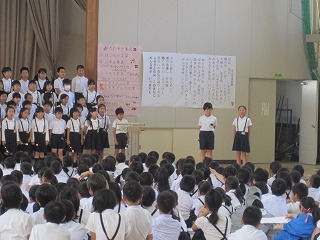 2017年6月15日 07時56分 [先生]6月14日(水)に「さわやか集会」がありました。4年生は「自分の言葉で表して 何事も がんばる ねばる カバーし合える 4年生」を学年目標として、みんなで失敗を繰り返しながら頑張ってきました。