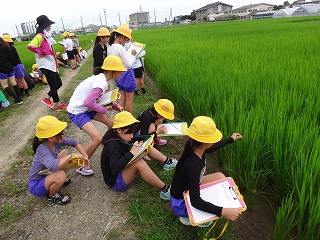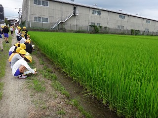 田んぼ見学へ行ってきました! 2017年8月4日 12時21分 [先生] 7月28日の学年登校日に翠星高校へ田んぼの見学に行きました。5月に植えた稲はぐんぐん成長していました。稲穂も見る事ができました。9月の収穫が楽しみな様子の子ども達でした。
