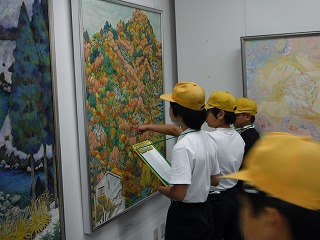 現代美術展鑑賞 2017年5月25日 17時53分 [先生] 5月25日木曜日の3・4限目に、市民工房うるわしで行われている現代美術展白山展に鑑賞に行ってきました。教科書等で作品に触れることは多々ありますが、本物に触れることはが少ないため貴重な機会になりました。鑑賞では、自分の気に入った作品を中心にどんなところが気に入ったかをじっくり見ている児童たちが印象的でした。鑑賞後のふりかえりでは、様々な観点から見た感想があり、感性が磨かれつつあるんだなぁと感じました。