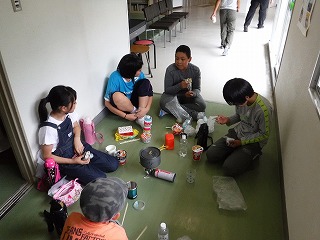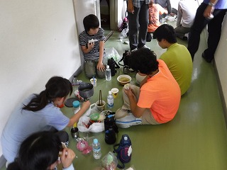 室内での昼食でしたが、班のメンバーと協力し、頑張ってお湯を沸かしていました。