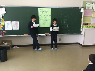 なかたん 6年生を送る会 2018年3月14日 16時32分 [jyouhou] 3月14日 5限目になかよし・たんぽぽのみんなで6年生を送る会をしました。今年は二人の6年生が卒業します。司会は上級生がしました。はじめの言葉を1年生がしっかり言ってくれています。最初はみんなでぼうずめくりをしました。次にみんなでおにごっこをしました。最後にみんなが作ったメッセージカードを6年生に渡しました。6年生はあと2日で卒業式です。式の練習などがんばってみんなで素敵な卒業式にしましょう!