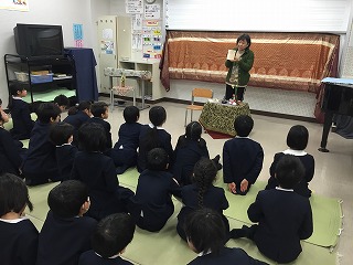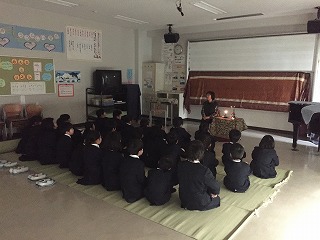 お話会がありました 2017年1月31日 19時28分 [先生] 1月30日、31日にお話会がありました。30日は3組と4組、31には1組と2組がお話をしていただきました。どの子も真剣にお話しの世界にひたっているようでした!