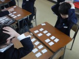 学年百人一首大会 2017年3月23日 17時37分 [先生] 本日6限目に、学年オリンピック文化系の百人一首大会が行われました。今回行った百人一首は、色百人一首と呼ばれるもので、小倉百人一首等と比べると短時間で簡単に行うことが出来るものです。予選で各色に分かれ戦い、その中で勝ち上がった人が決勝に進出する方式で行いました。児童は、大会本番までに音読の宿題等で頑張って練習・暗記をしてきました。その成果が出たようで、どの対戦もあっという間に札を取り合う大接戦が繰り広げられました。勝負ですので、結果がついて回りますが、どの児童も笑顔で取り組でいました♪