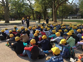 小学校最後の遠足は、「電車」「バス」の公共交通機関を利用し行いました。車内では、他のお客さんのことを一人一人がよく考え、一言もしゃべらずに終始マナーを守って乗車することができました。お客さんに、さっと席を立ち、譲る光景を目にし、とてもほほえましく思えました。グループでの金沢歴史探検では、決められたポイントを地図を見ながら回り、クイズを解きました。その中で、友だちと協力する姿、自然に男女が関わり合う姿をたくさん見つけ嬉しくなりました。さらに大きく成長できた活動になったのでないかと思いました。