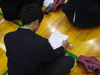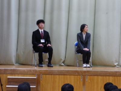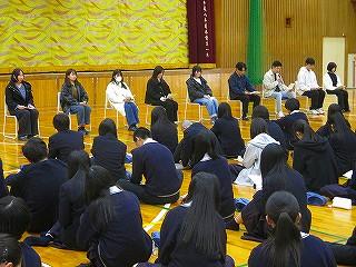 卒業生の話を一部抜粋すると、「部活動を引退するまでは、部活動と勉強の両立で悩んでいたとのことで、しかし、すき間時間を利用したり、朝少しだけ早く起きて勉強したり、どうにかして勉強時間を確保することに努めたと言っていました。」「そして毎日続けること、基礎を怠らないこと」など多くのことを実体験をふまえて教えていただきました。