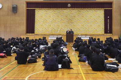 3年生は学年集会形式で、「受験」までの1年間の「取り組みのポイント」や「心構え」等を源校長先生や本校進路指導課主事、学年主任からお話を聞きました!