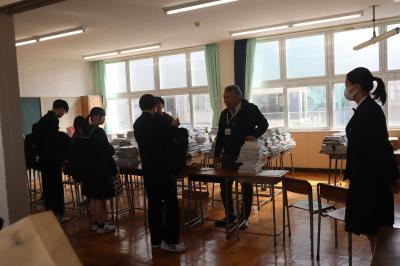 3月21日(金)仮入学を行いました。午前中は、基礎力確認テスト(国数英)、昼食をはさんで、午後からは、全体説明会、教科書・副教材の購入・制服の採寸などを行いました。昨日までの寒さから一転して明るく暖かい日となり、新入生たちの表情も晴れやかで、これからはじまる高校生活への期待や希望に満ちた様子でした。