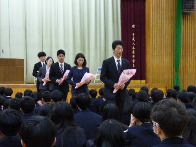 ・離任式では、転任される5名の先生方から明峰高校での思い出を振り返りながら、メッセージをいただきました。