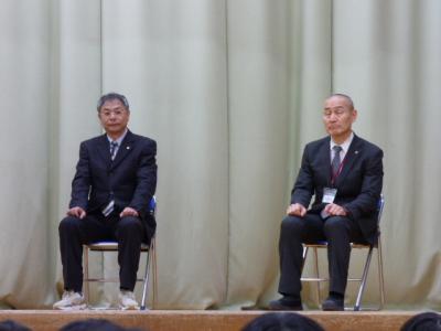 同窓会入会式では、新田寛之同窓会副会長より式辞がありました。また、同窓会クラス代表理事には、このあと詳細な説明を行いました。学年の代表として同窓会をさらに盛り上げていってほしいと思います。