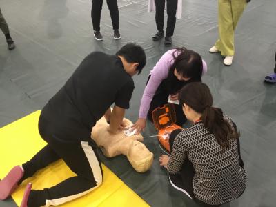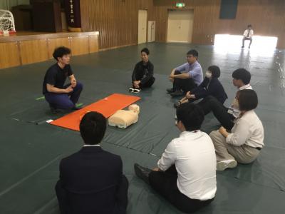 内容は①心肺蘇生の手順 ②AEDの使用手順 ③熱中症の応急手当 です。