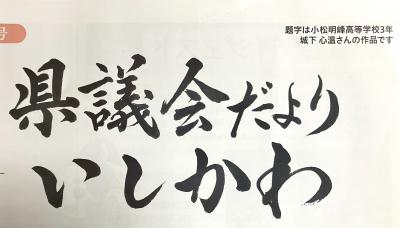今月発行の県議会だより(第51号)のタイトルに城下さんの書が選ばれました。