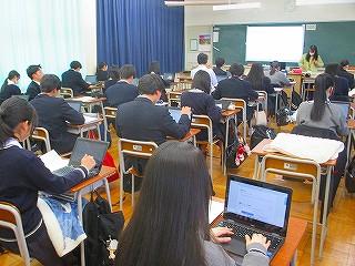 研修は本校新任教員、また若手教員の研修(若プロ)も兼ねて行っため、多数の教員が参加し、先生方は熱心にメモを取りながら、「探究成果」のまとめ方等の講義を受けました!