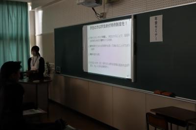 1月20日㈪に小松年金事務所から講師の先生をお招きし,3年生の進路決定者を対象とした年金セミナーを開催しました。これからの年金制度を担う生徒に対して,公的年金制度の仕組みや基本理念について教えていただきました。