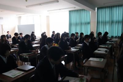 3年生は学年集会形式で、「受験」までの1年間の「取り組みのポイント」や「心構え」等を源校長先生や本校進路指導課主事、学年主任からお話を聞きました!