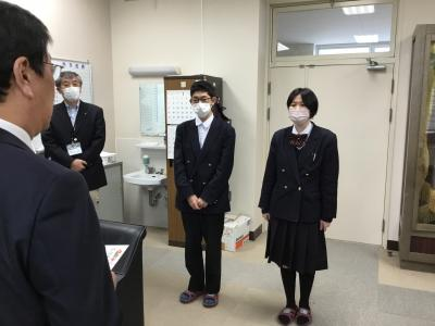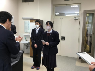 11月11日は「税を考える週間」の初日ですが、小松税務署長 荒井和憲様が来校され、直接受賞生徒に手渡されました。 また、源校長にも感謝状を贈られました。
