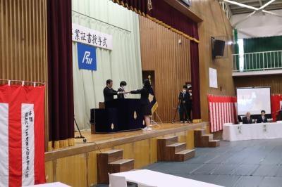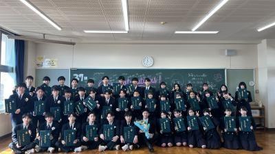 記念品贈呈式では、卒業生から在校生に『ロッカー』を、在校生から卒業生に、『モバイルバッテリー』が贈呈されました。