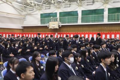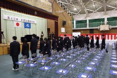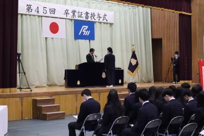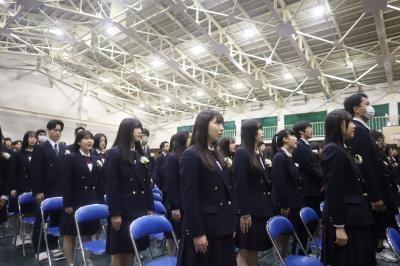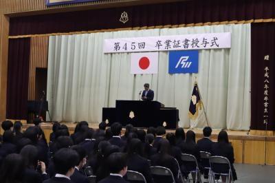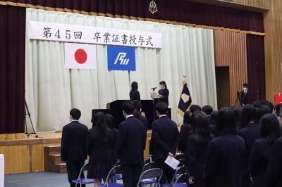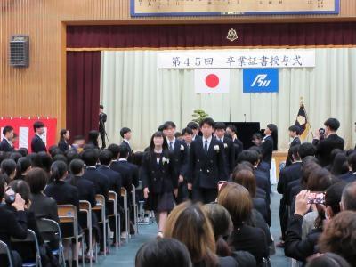 校舎前の雪も解け、明るい日差しが差し込む中、午前10時より、第45回卒業証書授与式が挙行され、275名の卒業生が希望に満ちた未来へと踏み出しました。