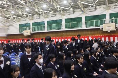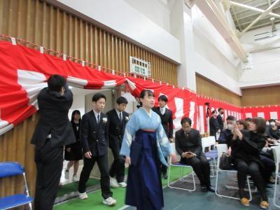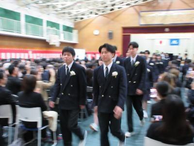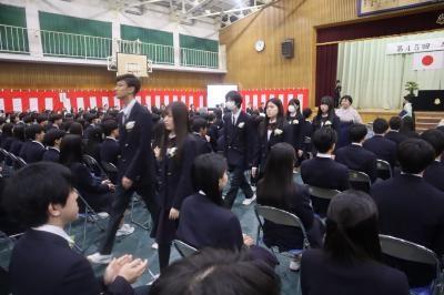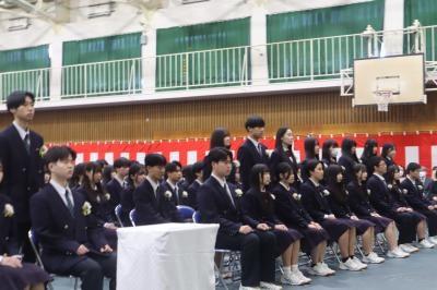 吹奏楽部が演奏する『3月9日』の曲が流れるなか、退場しました。各クラス、担任に向けた熱い思いも述べました。