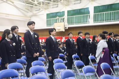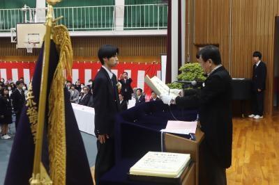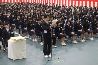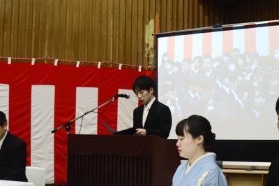 卒業生を代表して、漆原大志さんが学校生活や部活動での思い出やこれからの学校の中心となる在校生に向けた答辞を述べました。