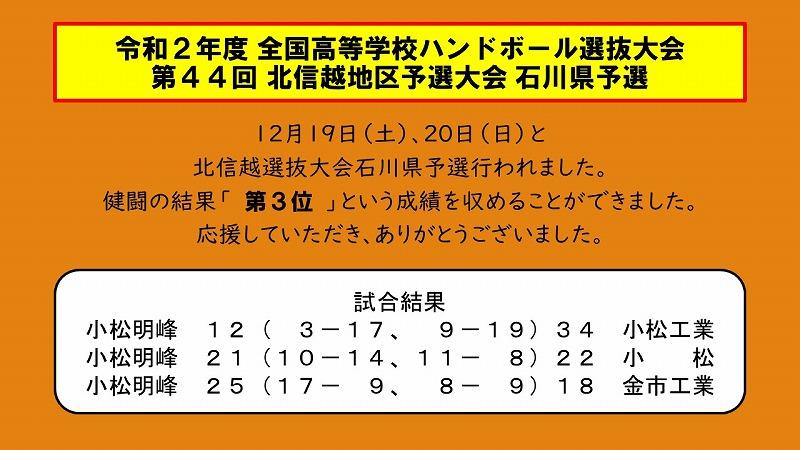 第44回 北信越地区予選大会 石川県予選結果