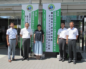 平成29年8月24日(木)・25日(金)の両日、静岡県袋井市を主会場に、第67回全国高等学校PTA連合会大会静岡大会が開催されました。本校からは渡邊会長、表校長をはじめとする5名が参加しました。午前の基調講演に続いて、午後の分科会においては、「ネットトラブルの予防と対策」について研鑽を積みました。