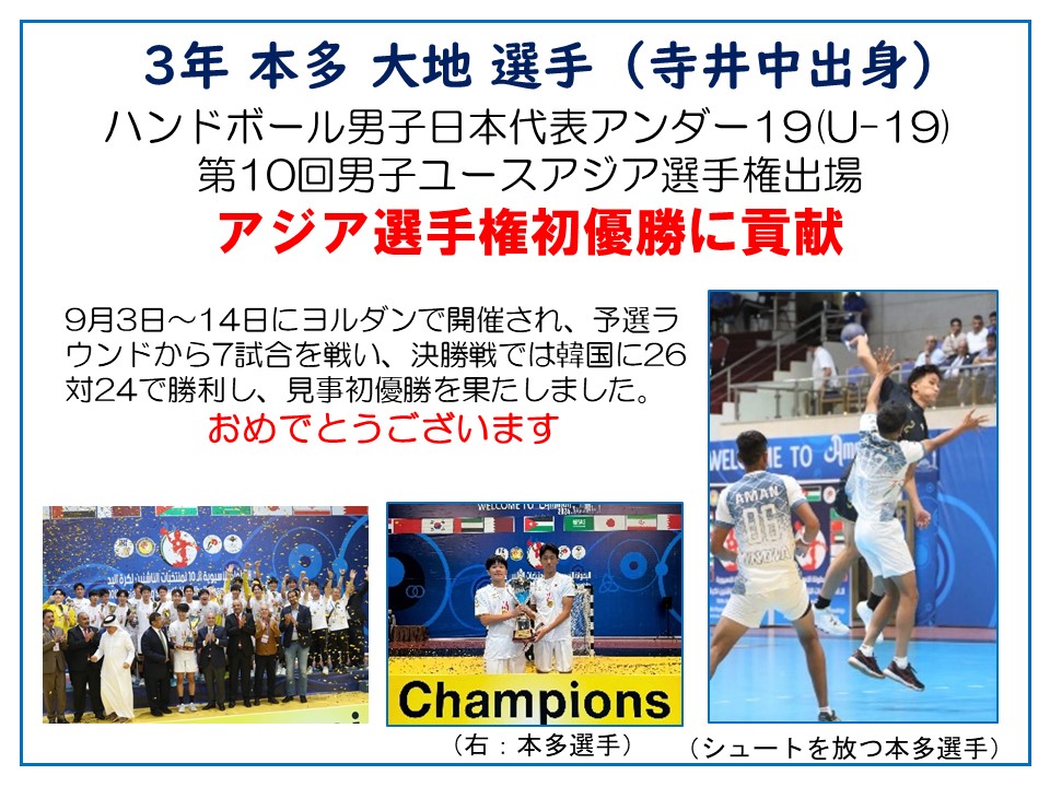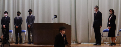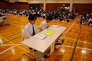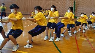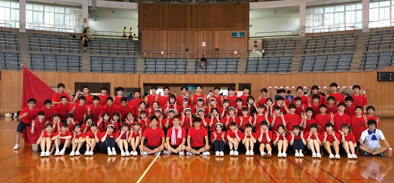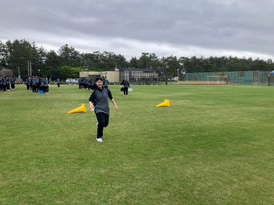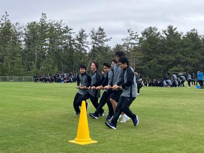 開会式で桐生校長が「全校生徒が集まって初めての学校行事。みんなで力を合わせて新しいものを創り上げよう。」と挨拶、保健委員長の中野太陽(3年辰口中卒)「手指消毒などの感染症予防対策の徹底」のお願いがあり、赤団団長田中杜弥(3年芦城中卒)、青団団長皆川篤人(3年松陽中卒)、黄団団長田中裕基(3年松陽中卒)の宣誓で競技は始まりました。