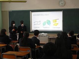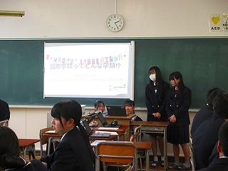 ・様々な国の写真を見せてくれたので,スライドを見るのが楽しかったです。世界には色んな国があり,文化も何もかも違うので,たくさんのことが学ぶことができました。