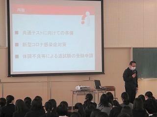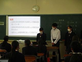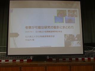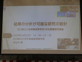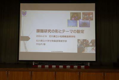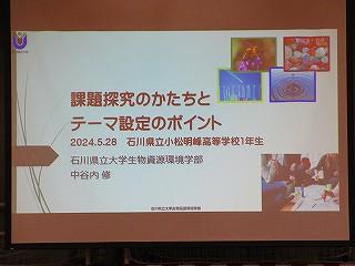 12月3日(火)7限目に、石川県立大学の中谷内修先生を本校探究アドバイザーとしてお招きして、1年生による「課題探究中間発表会」を行いました。