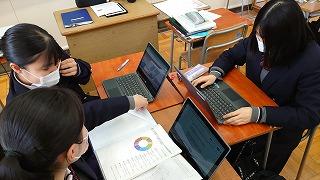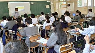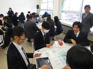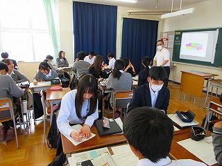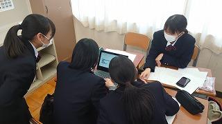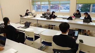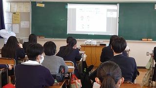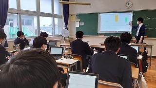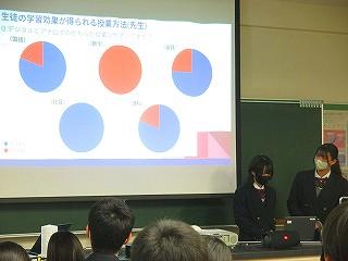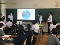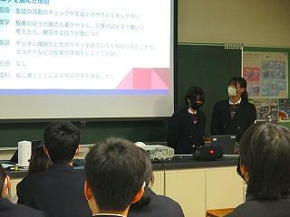 生徒は和やかな雰囲気の中で、これまでの探究経過を「スライド」にまとめて発表してました!!