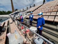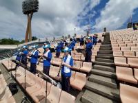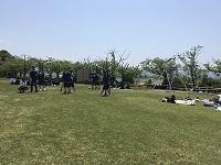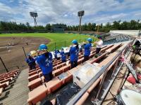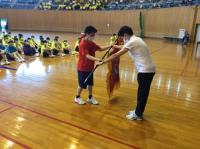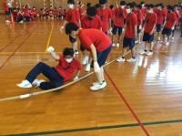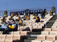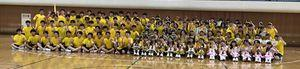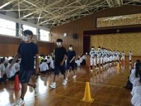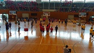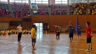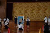 会場は天候に左右されない小松末広体育館。スタンドで観戦するときはソーシャルディスタンス。競技ごとに感染症予防対策を徹底しました。競技以外はマスク着用、競技の前後は手洗い、アルコール消毒、競技によっては軍手(団の色の軍手)着用、大きな声での応援ではなく大きな拍手、そして熱中症対策。