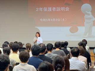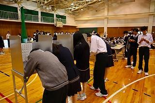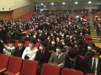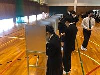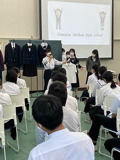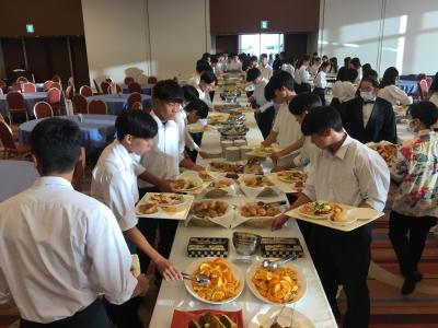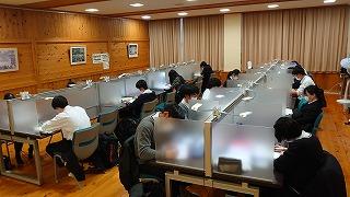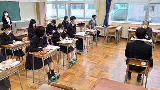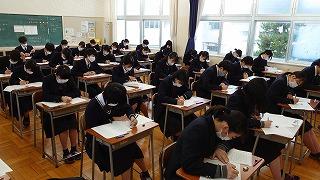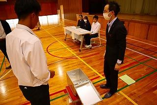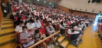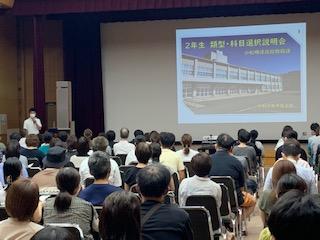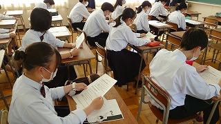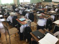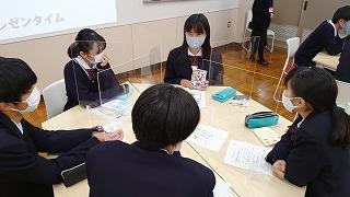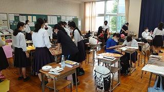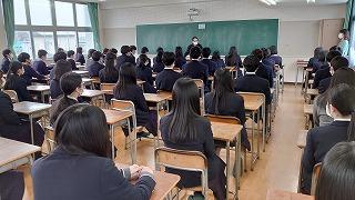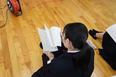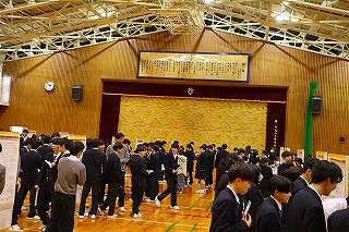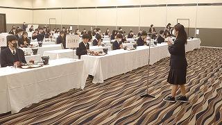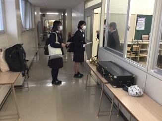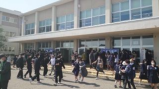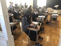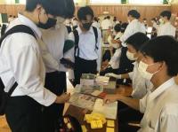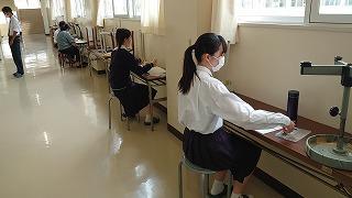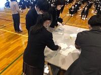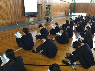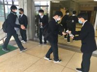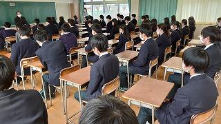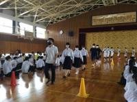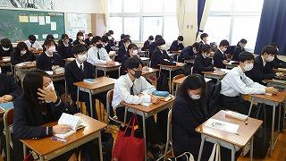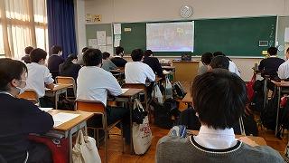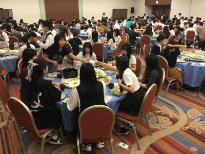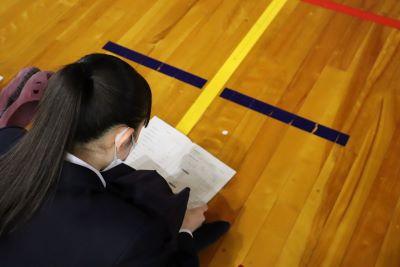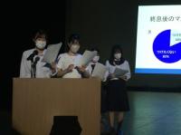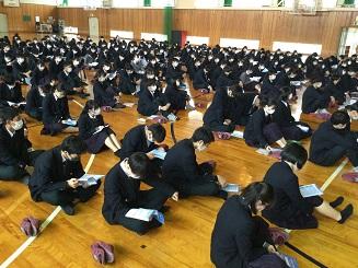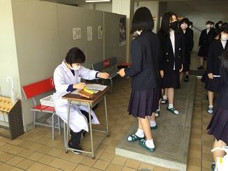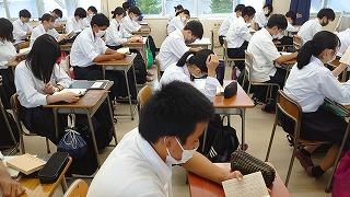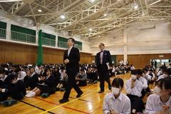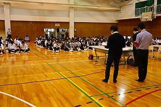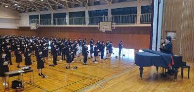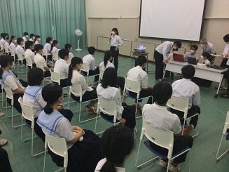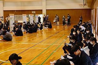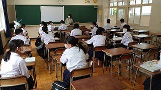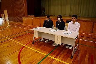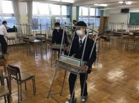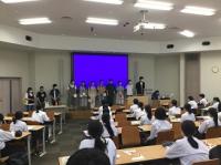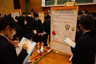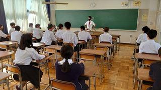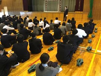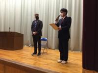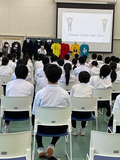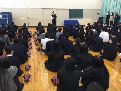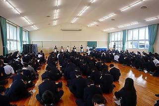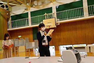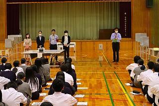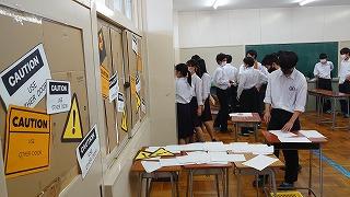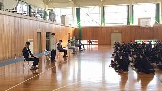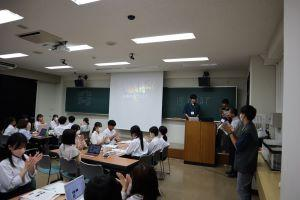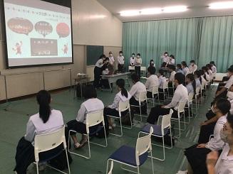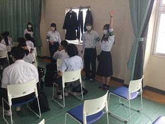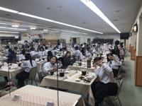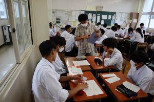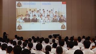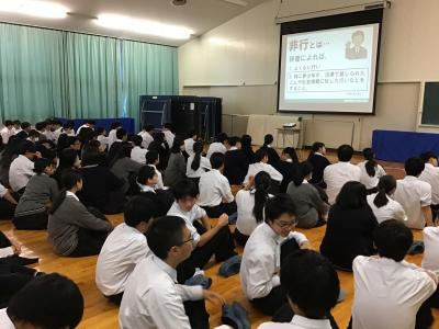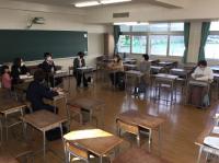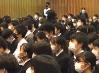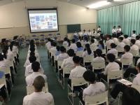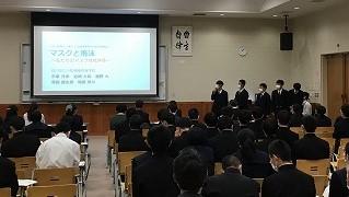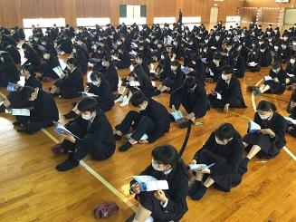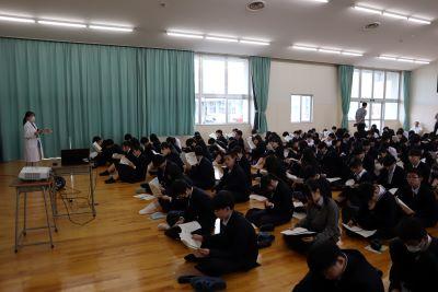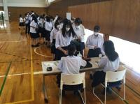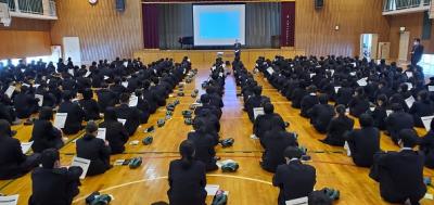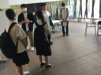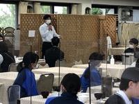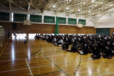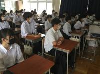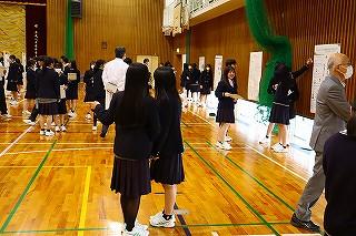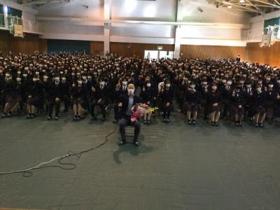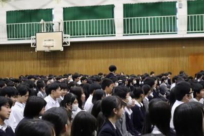 今日のプログラムは2部制。会場には全校生徒の半数(約350人)が入場し密を避けました。感染症対策の基本事項である①マスクの着用②人との距離確保③手指消毒④換気の徹底をして1日目を終えました。