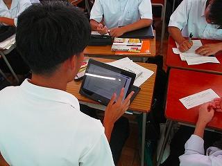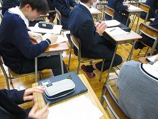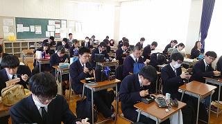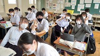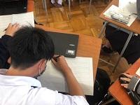 「数学A」では「Kahoot!」を使用して、クイズ形式で問題を解きました。設問を読んでからノートに計算を書き込み4択の答えをクリックします。クラスでゲームモードで参加し、誰が早く正解したかのランキングも出ます。教え合い学び合いが活発になりました。授業後、各自でカードにして振り返ることもできます。学ぶ楽しさの発見です。