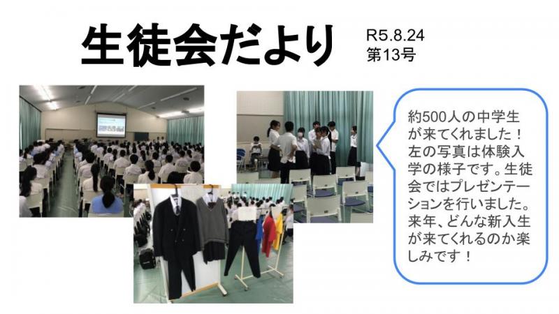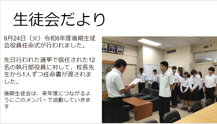 生徒たちは昨日の体育祭を振り返り、自己肯定感や自己有用感を高めてくれたらと思います。