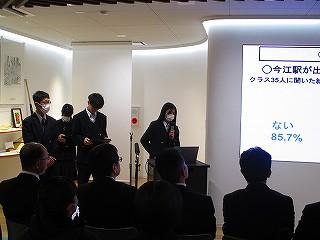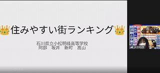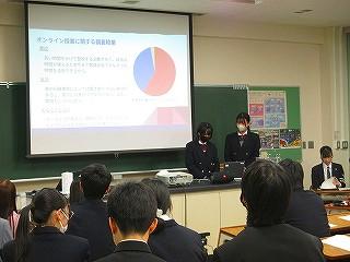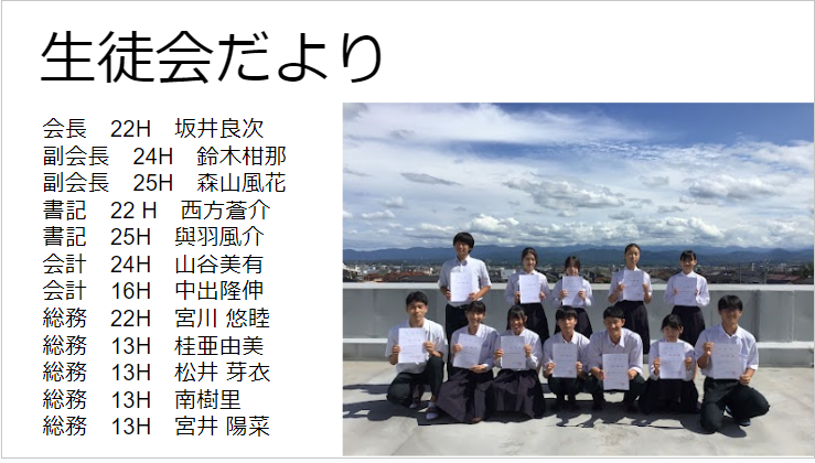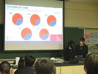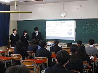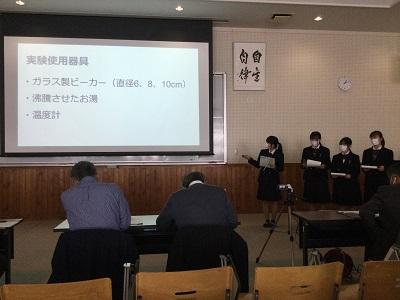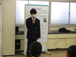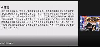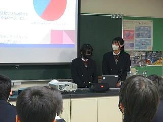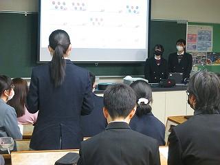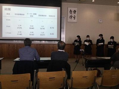 生徒は5分間の発表時間の中で、これまでの探究経過を「スライド」にまとめ、堂々と発表してました!!