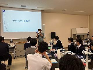 熱を瞬時に伝えるヒートパイプを作成する実験を行った後、その原理や活用例などの講義を聞きました。 作成したヒートパイプ内で水が沸騰する様子などを観察することができ、とても興味津々な様子でした。