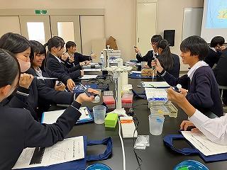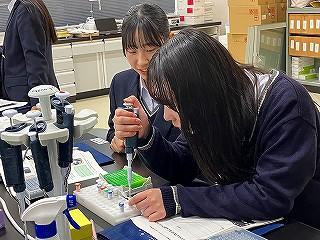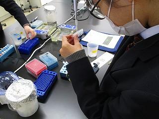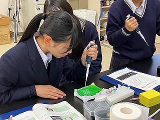 PCRや電気泳動についての講義を受け、初めて使うマイクロピペットに緊張しながらも、班で協力しながら丁寧に作業を行いました。