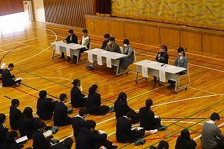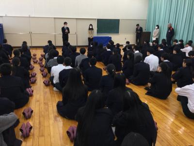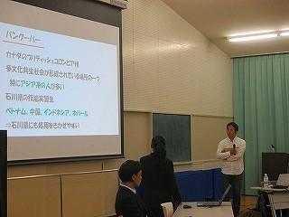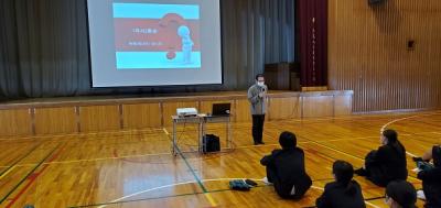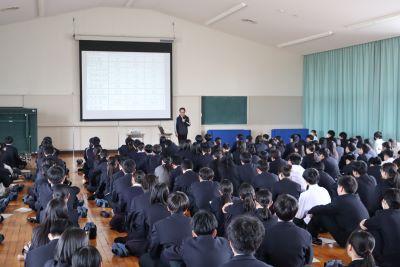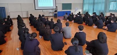 また、外部からNPO法人「みんなの進路委員会」代表の谷村さん、珠洲市で支援団体やホテル経営をされている畠山さんをお招きして、ふだんの授業と違った視点から、海外留学の良さを教えていただきました。