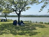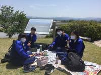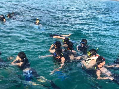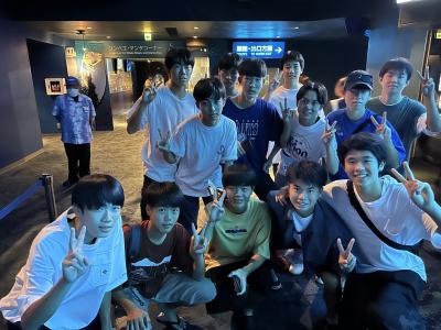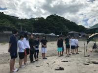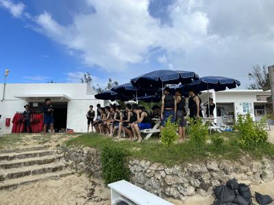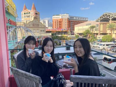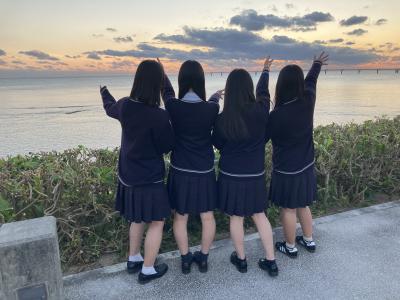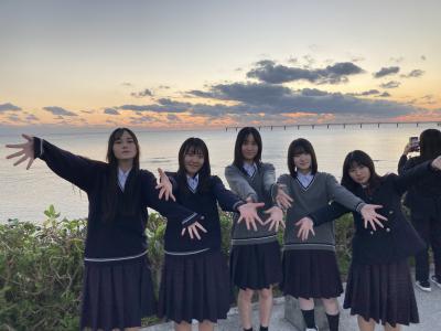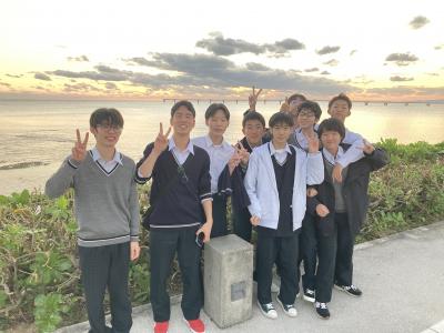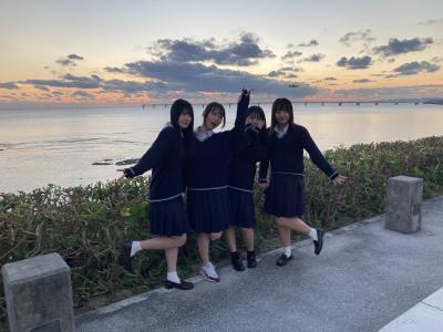 ウミカジテラスでの生徒の様子です。沖縄の海ときれいな夕日に感動しました。
