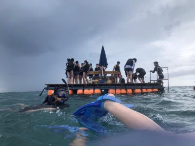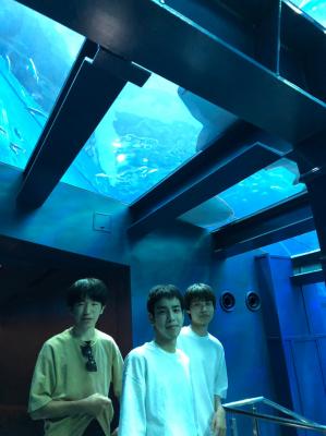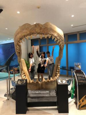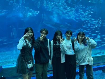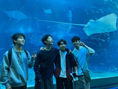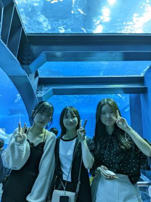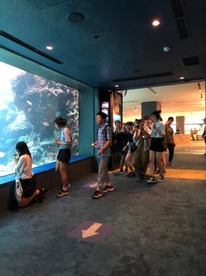 美ら海水族館では、ジンベイザメなど、普段は見れない魚を大きな水槽で見ることができました。