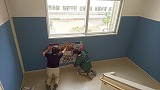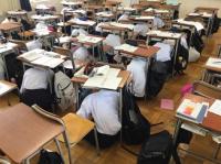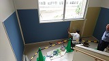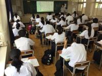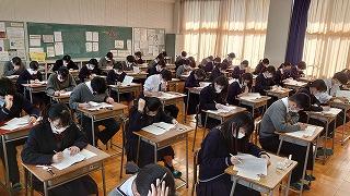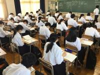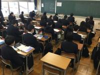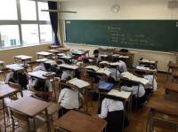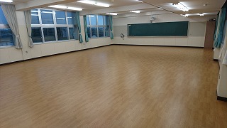 本校の大講義室の床を全面張り替えしてリニューアルしました。大講義室はクラス合同での授業や習熟度による授業、総合的な探究の時間などで使用しています。黒板上にプロジェクターも設置してあり、積極的にICTを活用しています。いつまでも綺麗な大講義室を維持して勉強に励みます。