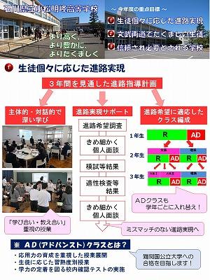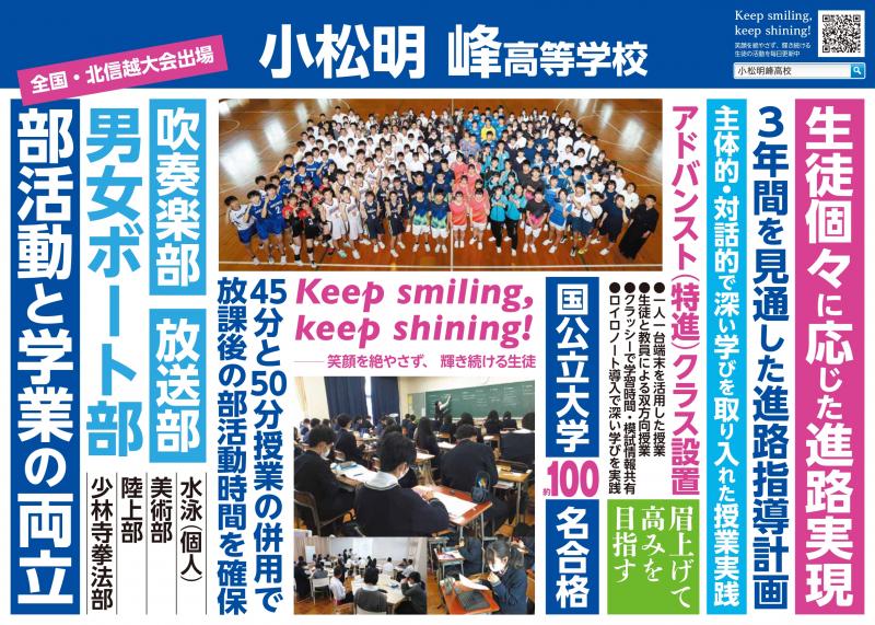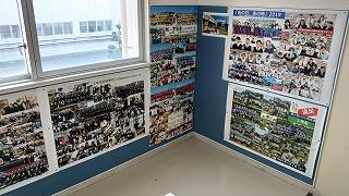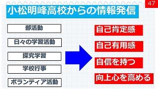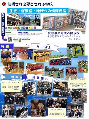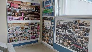 玄関から職員室に上がる階段の壁に生徒の活動を紹介するコーナーを設置しました。学校生活での日々の活動が「生徒一人ひとりの人間力を高めていることにつながっている」と実感できるものにしたいと考えています。そして小松明峰高校の名所になればと思っています。