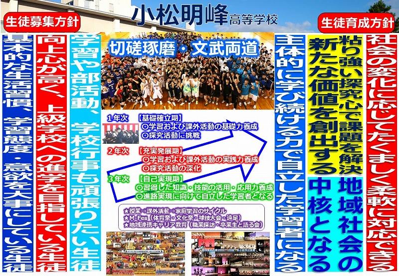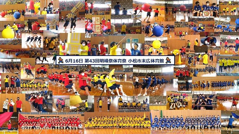 昨年度は8月末に予定していた明峰祭。文化祭と体育祭で3日間でしたが、小松市は「緊急行動期間」となり「明峰祭」のすべてが中止となりました。コロナ禍においてもなんとか学校行事を生徒のために実施したい、学校行事を通して生徒の成長につなげたいという考えから、今年度は「明峰祭」のすべてがなくならないように計画しました。体育祭は本日6月16日(水)、文化祭は8月27日(金)・28日(土)に分散しておこないます。