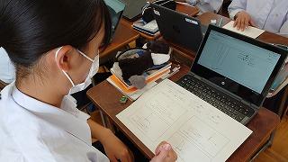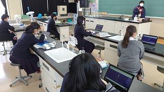 「化学」では、「GoogleForms」を使用して、これまで学習したことの小テストをおこない、到達度を確認しました。