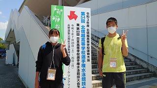 7月24日から長野県のアクアウイングでおこなわれている「令和3年度北信越高等学校水泳大会」の個人競技に出場しています。石川県大会を勝ち上がった本校1年生の木川仁来(松陽中卒)と牧 夏音(南部中卒)が出場。牧 夏音は女子100mバタフライと200mバタフライ。木川仁来は男子100m平泳ぎと200m平泳ぎ。