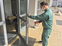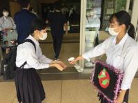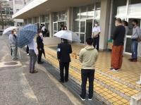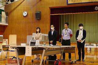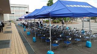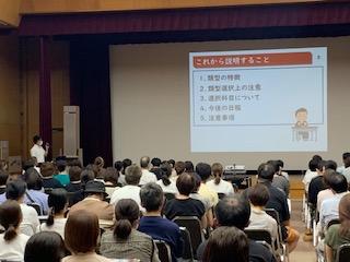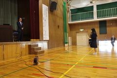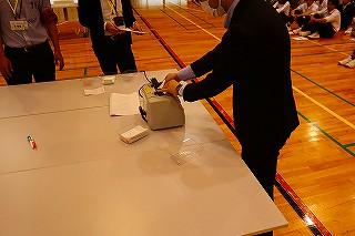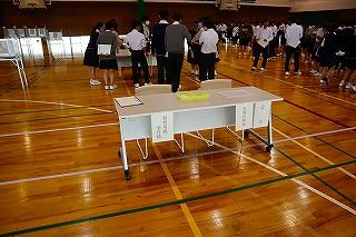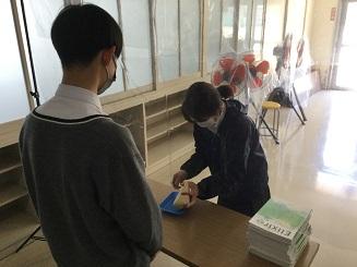 会場入り口では保健委員会が手指消毒や感染対策の徹底を呼びかけていました。