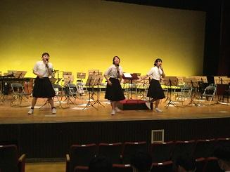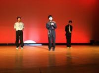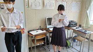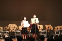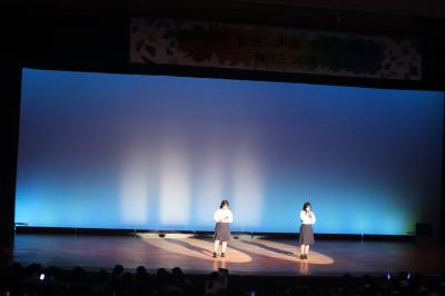 ステージ発表のオープニングは吹奏楽部。BTS「Dynamite」の演奏ではハンドボール部員のダンスパフォーマンスで会場を盛り上げました。放送部の「放送部の大会って何してるの?」ではアナウンス部門で全国大会出場の桶屋春菜(3年笠間中卒)と朗読部門で全国大会出場の大野こだま(3年松陽中卒)がその実力を披露しました。