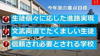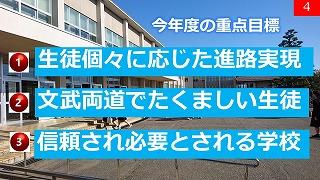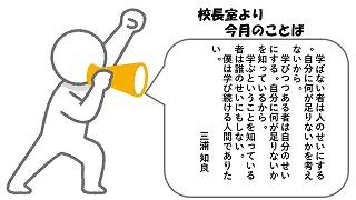 毎月、桐生校長から生徒へメッセージをおくっています。生徒玄関や職員室前に設置してあるサイネージ(ディスプレイ)に表示して、さらなる高みを目指す生徒になってもらいたいと思います。今月は「かけ算チームになろう」チームの明確な目標があり、そのうえで自らも目標を設定でき、モチベーションのかたまりをいつも背負っている。チームの中で自分が何をすべきかわかっている。かけ算チームになろう!