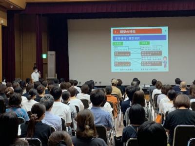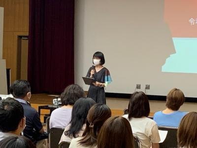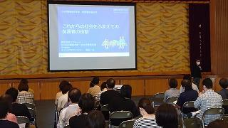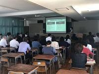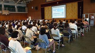 研修は本校新任教員を含め、多数の教員が研修会に参加し、熱心にメモを取りながら、探究成果のまとめ方等の講義を受けました。