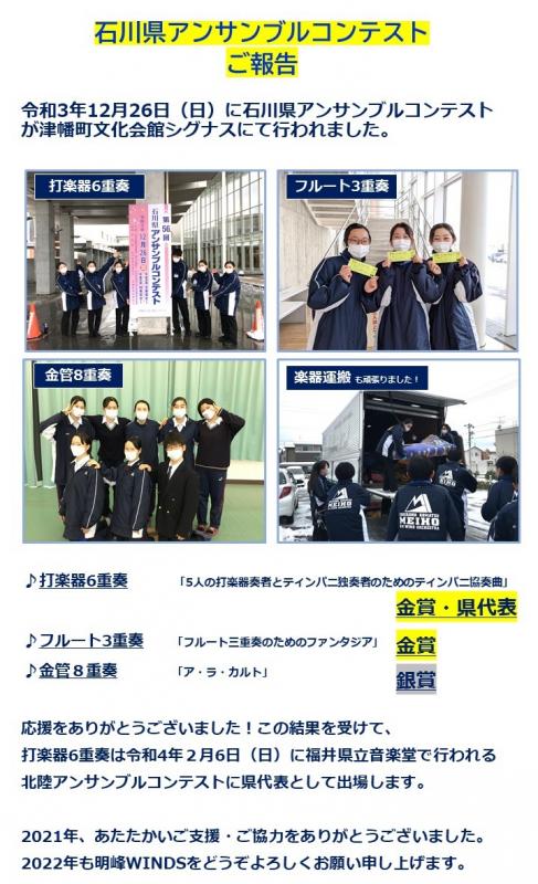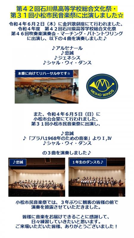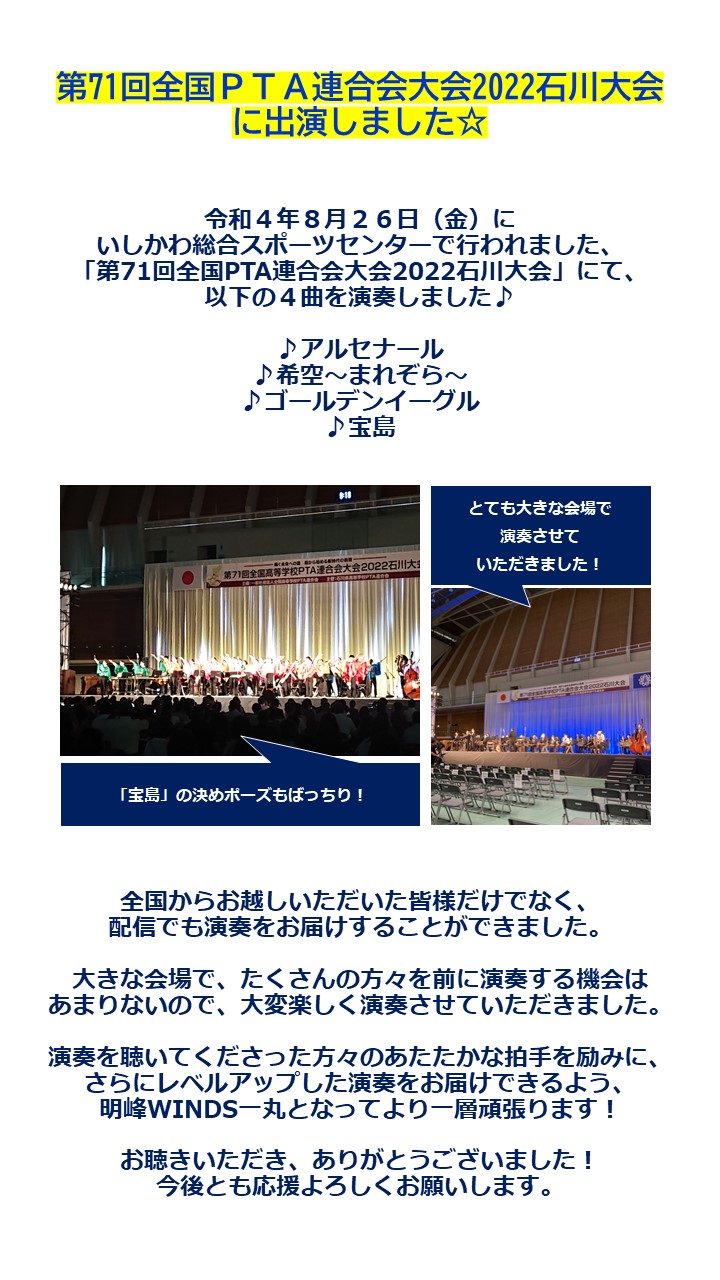 また県代表として8月8日金沢歌劇座で第62回北陸吹奏楽コンクールにも出演することが決定しました。